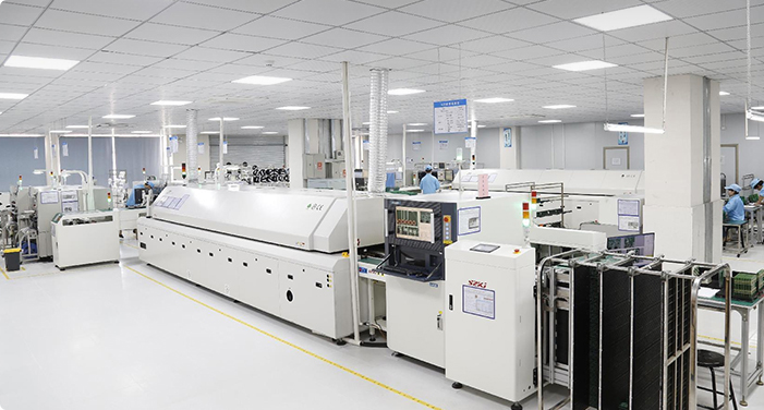 公司从日本引进4条定制的全自动SMT贴片线,2条DIP后焊、组装、测试全套流水生产线;及SPI、SMT首件测试仪、AOI、ICT、ET电源、电子负载、精密电源、老化架、专用全自动测试架功能测试,电子显微镜,烤箱等各种专业的检测设备。